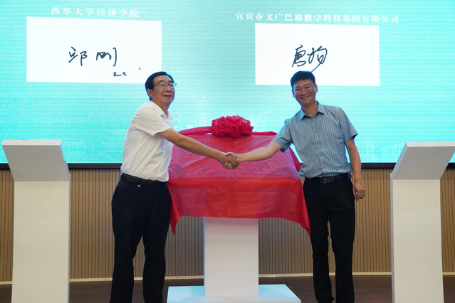 伟德BETVLCTOR1946经济公司党委书记邱刚和宜宾文传巴蜀数字科技集团有限公司党支部书记、董事长曹杨签订战略合作协议并为“战略合作伙伴”揭牌